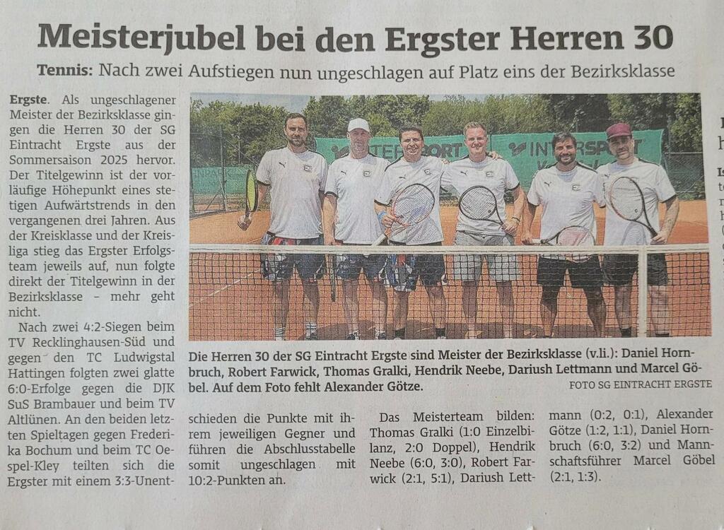 Ergste. Weil die Stadtverwaltung das Benehmen erteilt hat, ist die Tennisabteilung der SG Eintracht Ergste in den Genuss einer Förderung aus dem Landesprogramm „Moderne Sportstätten 2022“ gekommen. Mehr als 30.000 Euro konnten die Ergster so in ihre Sportstätte an der Elsetalstraße in Villigst stecken.