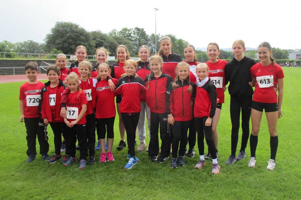 Entsprechend zufrieden war SGE-Trainerin Michelle Grüll: „Der Wettkampf ging mit dem Weitsprung und den Hürden etwas schleppend los, dann aber wuchs das Team über den Sprint und den Ballwurf zusammen, puschte sich gegenseitig und ließ sich auch von den Regenunterbrechungen nicht beeinflussen – die viele persönlichen Bestleistungen, insbesondere der U12-Athletinnen, sind ein Beweis dafür.“