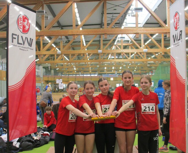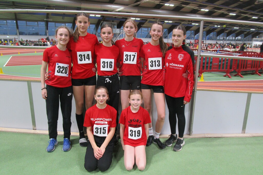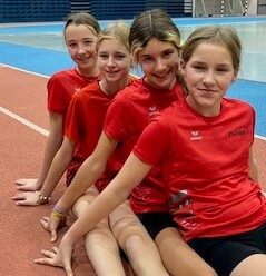 Den gleichen Platz belegte die 4x50m-Staffel der WKU12 in 31,35sec mit ebenfalls guten Wechseln in der Besetzung Victoria Wycisk, Klara Giefers, Ida Rabiega und Juna Tekhaus. Nicht ganz so gut fiel das Ergebnis in der 3x800m Mittelstreckenstaffel aus. Wycisk, Tekhaus und K. Giefers benötigten 10:02,07min und wurden damit Achte.