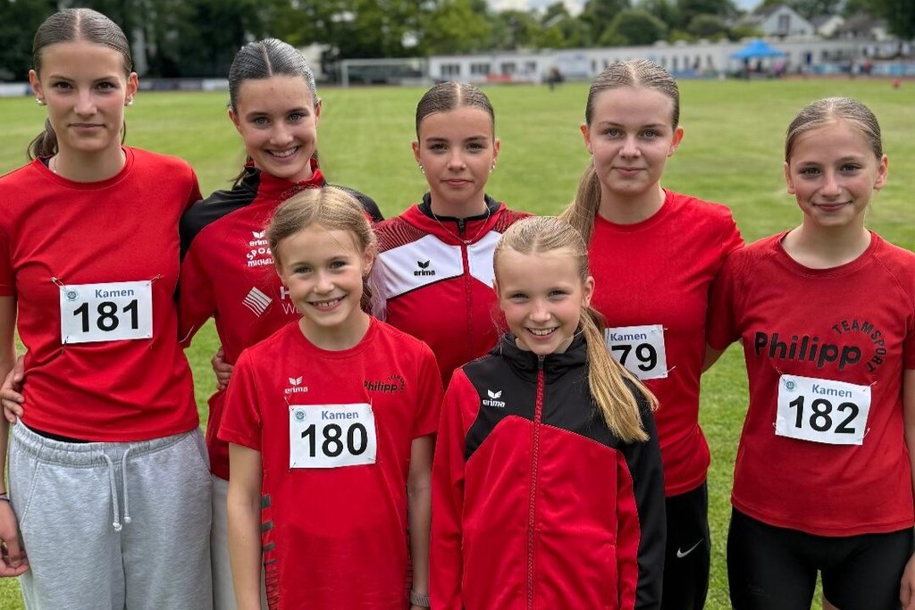 Als fleißigste Ergster Titelsammlerin betätigte sich W13-Athletin Lelia Kotthoff. Gleich in ihrem ersten Speerwettkampf warf sie das 400g schwere Gerät auf gute 15,69m und wurde damit Kreismeisterin, ebenso wie über 60m Hürden in 12,94sec. Im 75m-Sprint belegte sie in 11,80sec den zweiten Platz. Hier kam ihre Trainingskollegin Juna Tekhaus in 12,38sec auf den Bronzerang. Einen Doppelsieg in dieser Altersklasse gab es im Weitsprung durch Ida Rabiega und Klara Giefers. Rabiega legte eine starke Serie mit fünf Sprüngen über vier Meter hin und freute sich über ihre Siegerweite mit Bestleistung von 4,28m, während Giefers mit 4,06m erstmals die 4m-Marke knackte. Über 800m sicherte sich Giefers den Titel in 2:59,46min vor Nele Müller in 3:20,08min. Der souveräne Staffelsieg über 4x75m in der Besetzung Tekhaus, K. Giefers, L. Kotthoff und Müller mit Saisonbestleistung von 43,33sec rundete das äußerst erfolgreiche Abschneiden der Altersklasse W13 ab.
