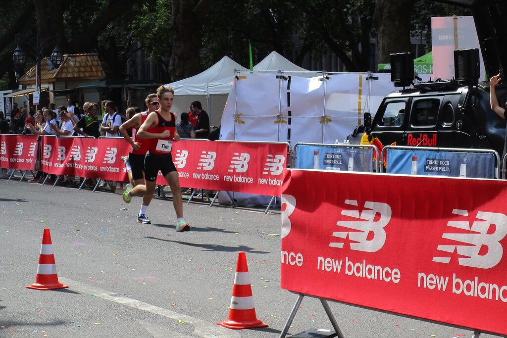 Der für die SG Eintracht Ergste startende Tim Oelschläger war am vergangenen Sonntag bei der Premiere der Düsseldorfer Kö-Meile dabei. Im Rennen „Kö-Meile für alle“, bei der die Athleten 1609m über die Düsseldorfer Königsallee absolvieren mussten, ging der Ergster couragiert an und führte das Feld bis etwa zur Hälfte mit an. Dann aber musste er seinem hohen Anfangstempo ein wenig Tribut zollen und zwei Konkurrenten ziehen lassen. Nach 4:43min überquerte er als hervorragender Dritter die Ziellinie und war mit seinem Lauf sehr zufrieden: „Bis 800m lief es super, dann sind mir die Beine etwas schwer geworden. Eine tolle Veranstaltung, es hat Spaß gemacht, bei so einem Event und den vielen Zuschauern hier zu laufen.“ kos