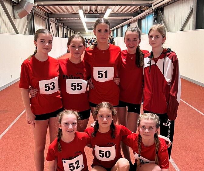 Starke Leistungen zeigte der SGE-Nachwuchs insbesondere im Weitsprung: Cara Schulz landete mit 4,06m erstmals jenseits der Viermetermarke und steuerte mit 443 Punkten die höchste Einzelwertung für ihr Team bei. Auch Charlotte Klagholz sprang mit 3,75m zu neuer Bestweite und kam ebenfalls auf über 400 Punkte (405). Ebenso konnte sich die 4x50m-Staffel in der Besetzung Zoe Timusk, Klara Giefers, Lilja Warnke und Schulz mit guten Wechseln verbessern und blieb in 30,97sec. erstmals in dieser Saison unter 31 Sekunden. Das Sprintquartett mit Klagholz, Pia Schuchtmann, Lelia Kotthoff und Ida Rabiega kam wegen eines verpatzten Wechsels erst nach 32,41sec ins Ziel.