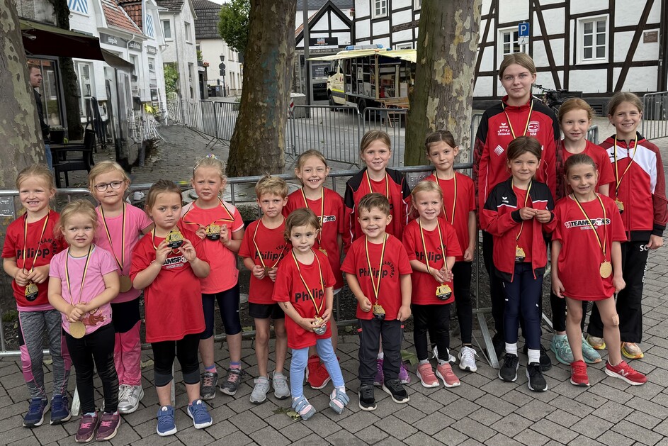 Ohne Wertung startete der Bambinilauf der unter Sechsjährigen über 200m, ganz nach dem Motto: Dabeisein ist alles! Mit Linus Gertz (Jahrgang 2023), Jona Csigi (2022), Tom Rötzel, Nico Büser, Mila Stumpf (alle 2021), Pauline Heise, Lotta Marek, Frida Lesch, Tristan Kretzschmar, Lennart Urban, Florian und Henry Krajcyzk, Mila Backes, Mila Wiegandt und Mila Lingstädt (alle 2020) stellte die SGE ein Drittel der Teilnehmer, die nach dem Zielleinlauf alle mit einer Medaille und einem Kissen belohnt wurden.