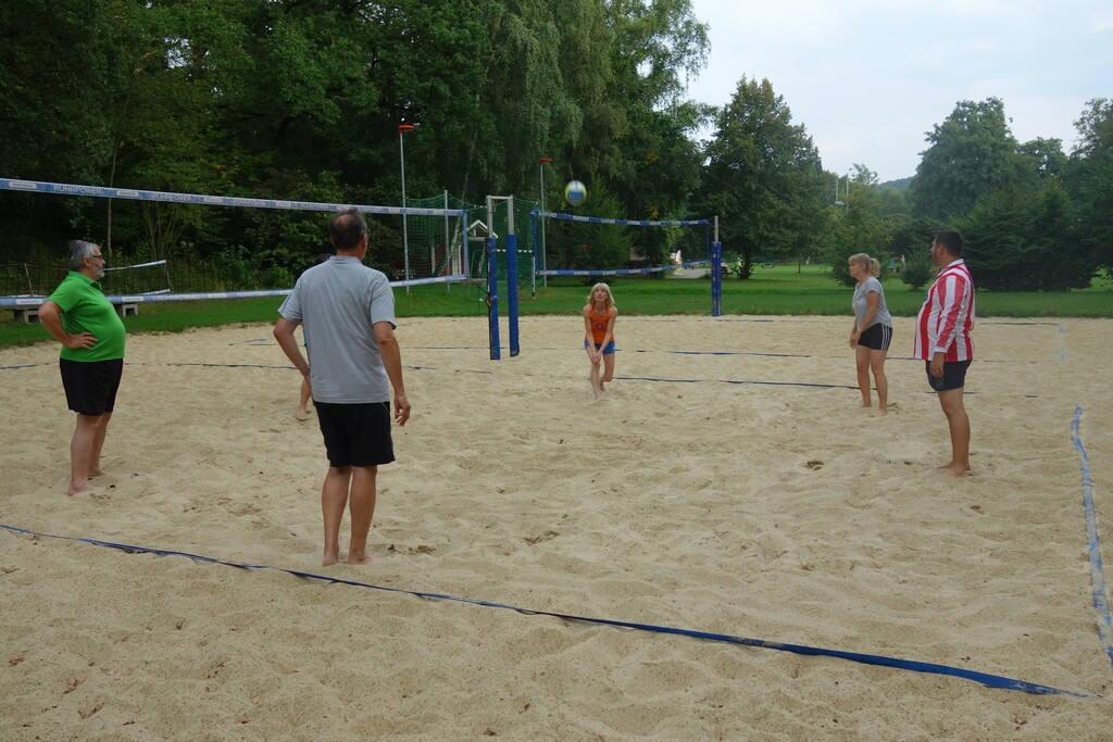 Wie jedes Jahr seit der Errichtung der Spielfelder vor über 17 Jahren durch diese beiden Vereine müssen die Sandflächen gründlich durchgeharkt, der Sand einigermaßen gleichmäßig verteilt werden.